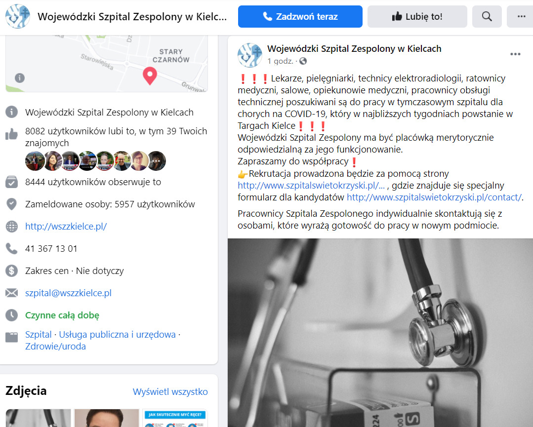 Wojewódzki Szpital Zespolony poszukuje pracowników do szpitala tymczasowego, który utworzony zostanie w pawilonach wystawienniczych Targów Kielce.