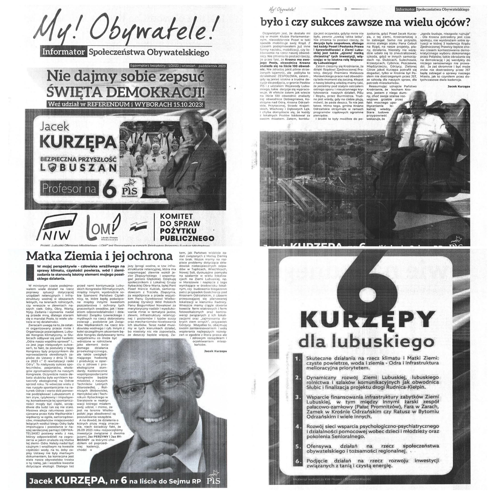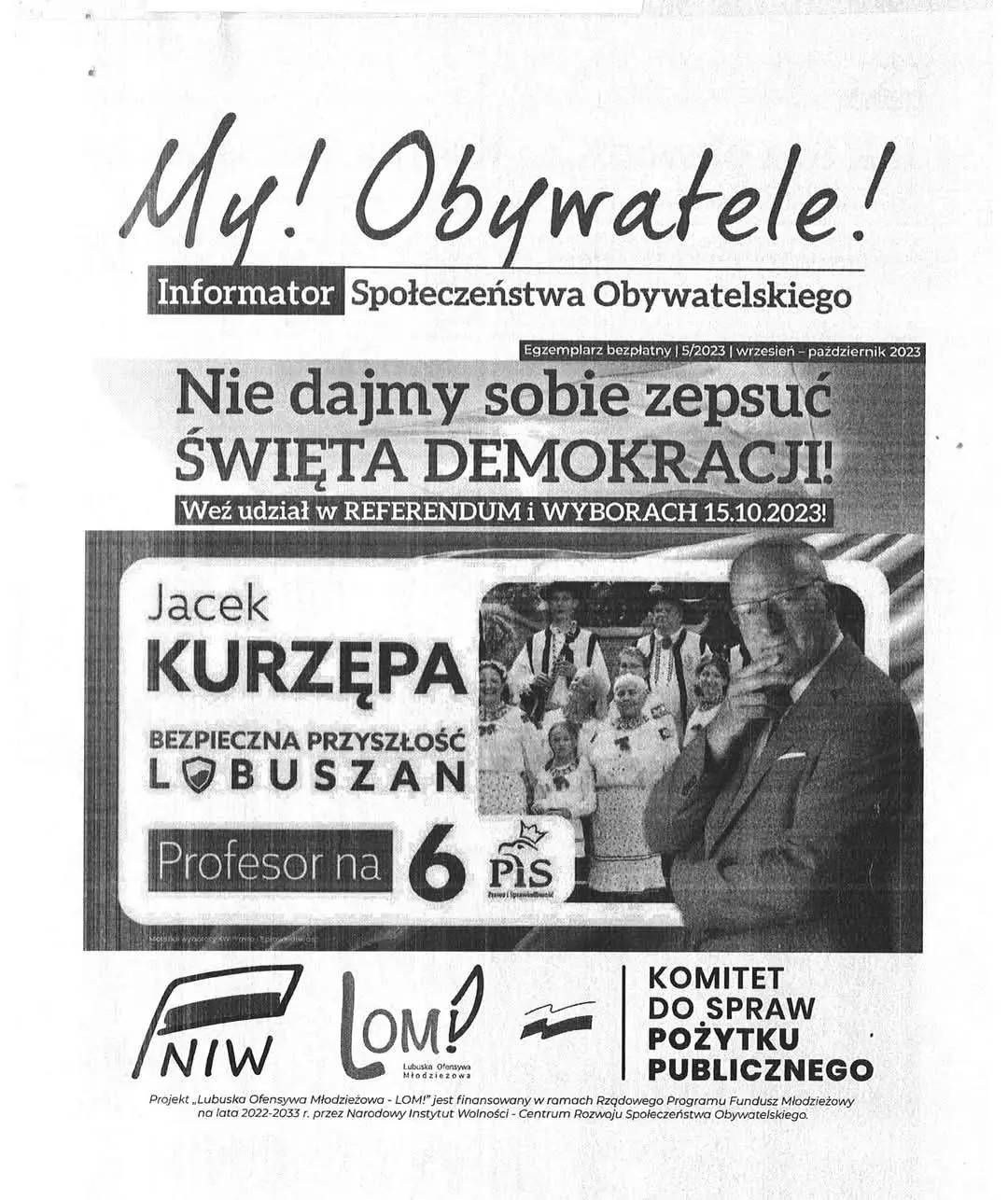 Szczególnie bulwersuje fakt wydawania publicznych pieniędzy na finansowanie kampanii wyborczej posła w 2023 roku podczas wyborów parlamentarnych. Stowarzyszenie przeznaczyło prawie 50 tysięcy złotych z projektu dla młodzieży na wydanie gazetki „My obywatele”. Na każdej z 12 stron tej publikacji jest zdjęcie byłego posła PiS Jacka Kurzępy. Było to jedyna publikacja w całym projekcie! – poinformował Michał Braun