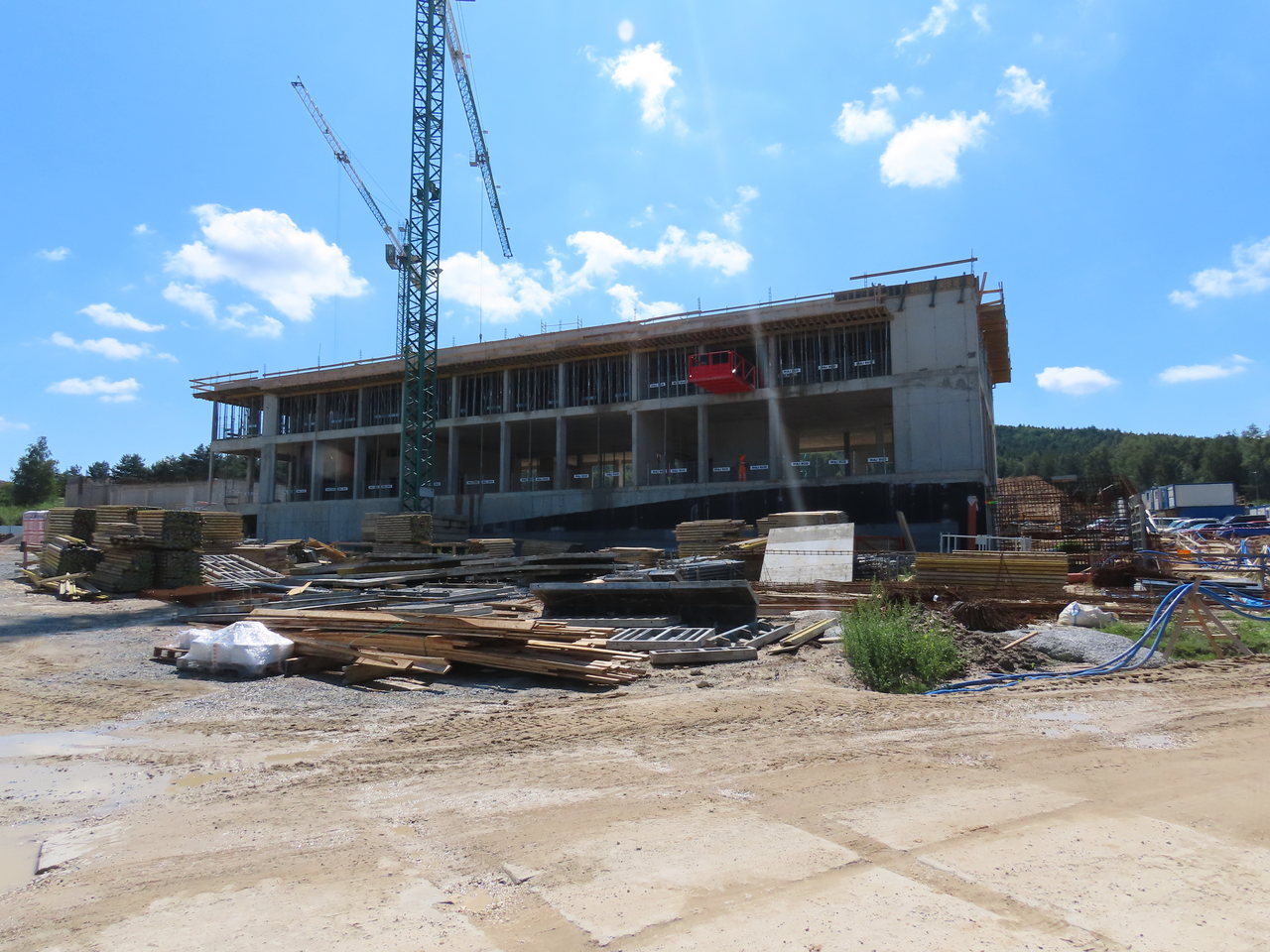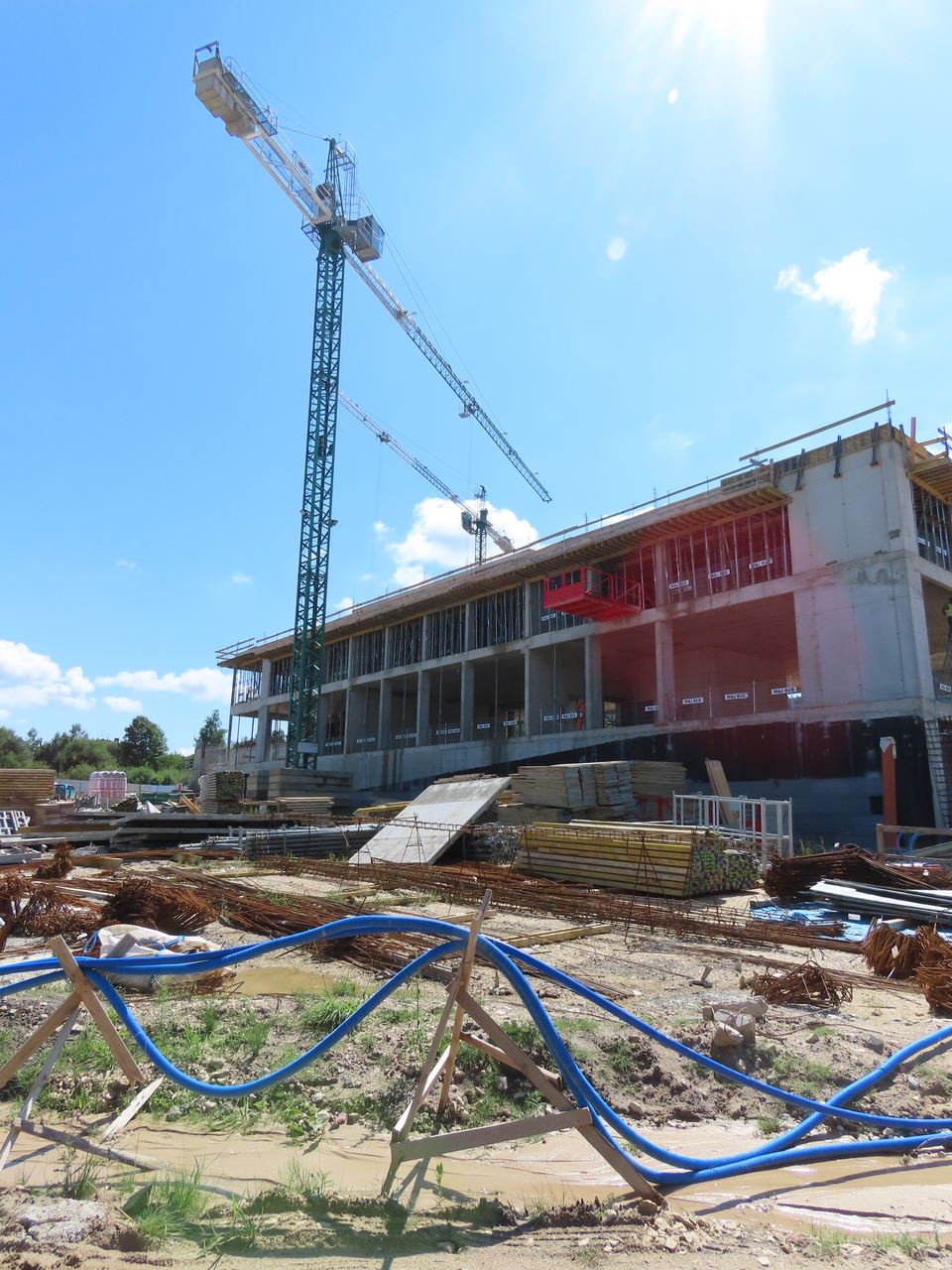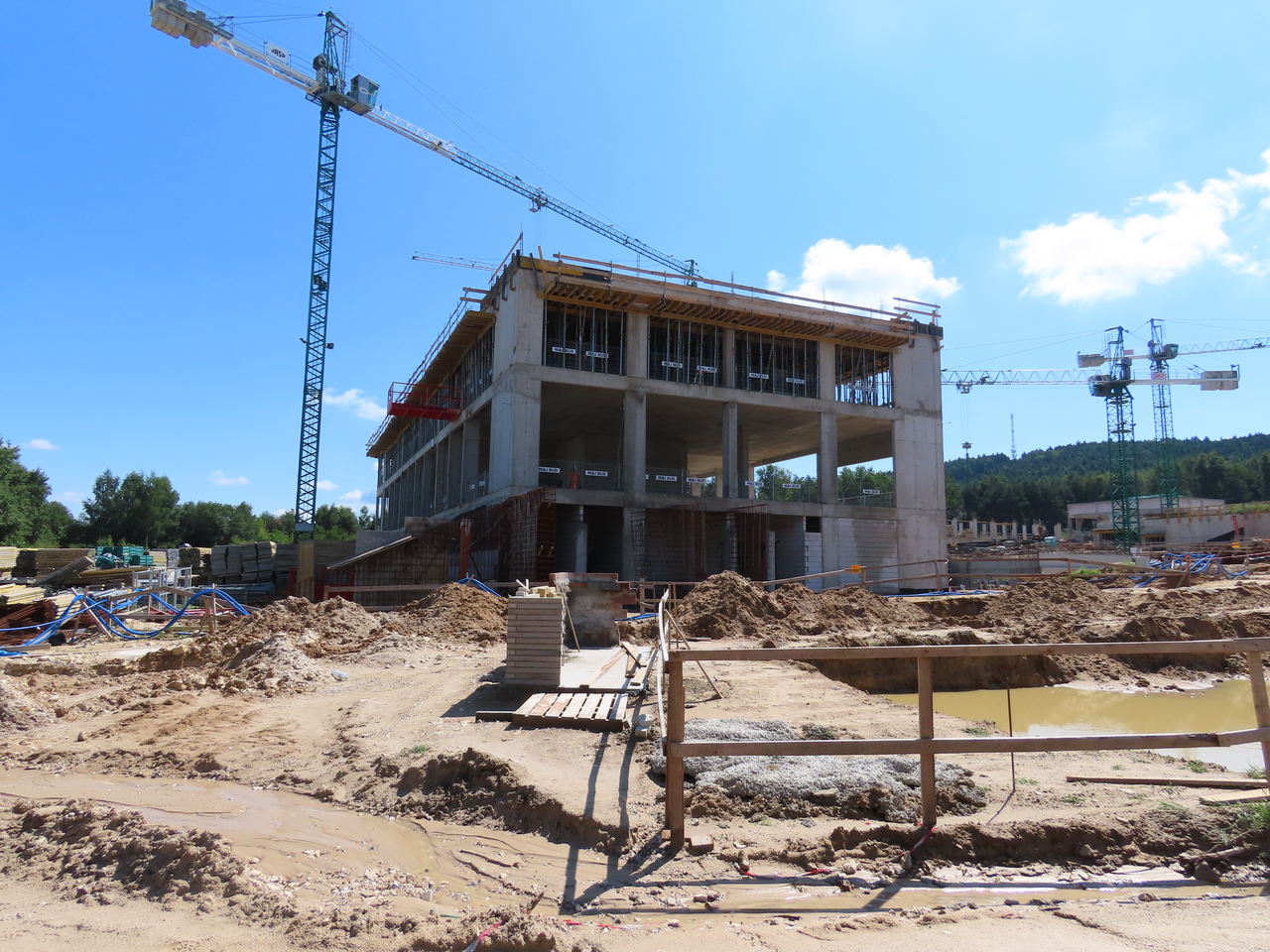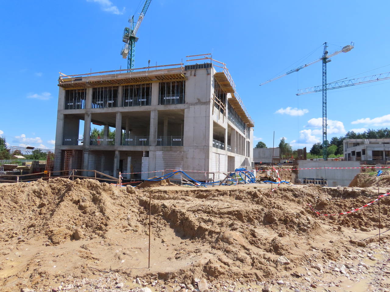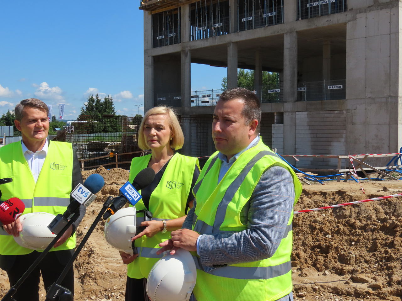 – Budowa Kampusu postępuje zgodnie z planem. Ukończone mamy trzy budynki w stanie surowym, zaczną się w nich wkrótce prace wykończeniowe. Kolejne pięć budynków ma zakończone prace ziemne. Jesteśmy zadowoleni z postępów, a zakończenie prac planowane jest na styczeń 2023 roku. Potem zaczną się odbiory techniczne, sprowadzanie sprzętu i wyposażenia, aparatury badawczej. Pełne uruchomienie działalności Kampusu jest planowane na styczeń 2024 roku – przekazał dyrektor generalny.
