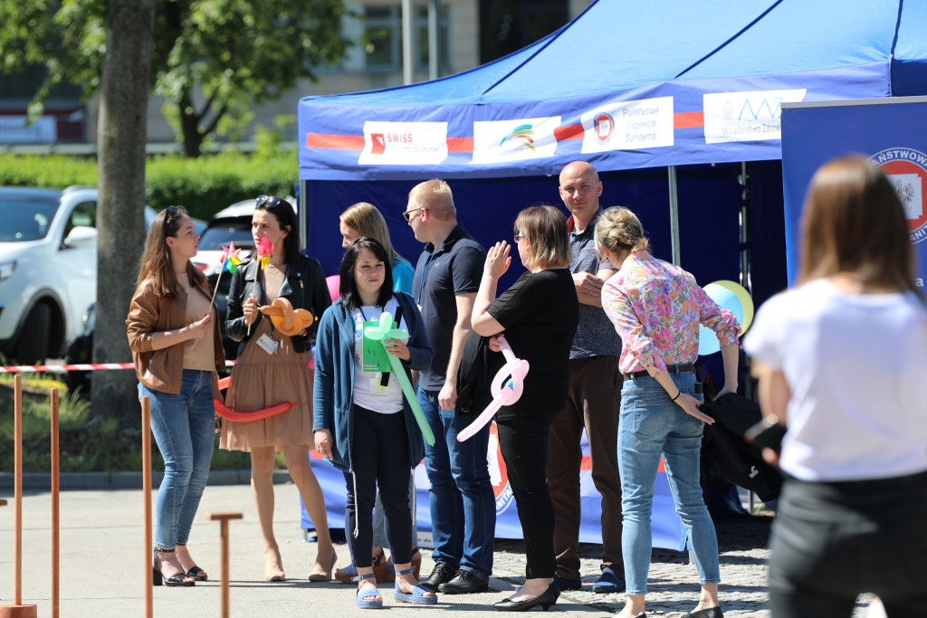 Świętokrzyskie Centrum Ratownictwa Medycznego i Transportu Sanitarnego w Kielcach pokazuje, jak prawidłowo i bezpiecznie udzielać pierwszej pomocy przedmedycznej bez używania sprzętu ratowniczego z zachowaniem przepisów sanitarnych. Pracownicy Wojewódzkiej Stacji Sanitarno-Epidemiologicznej w Kielcach mierzą poziom tlenku węgla w wydychanym powietrzu, wykonują pomiary ciśnienia tętniczego krwi, prowadzą poradnictwo związane z profilaktyką chorób odkleszczowych.