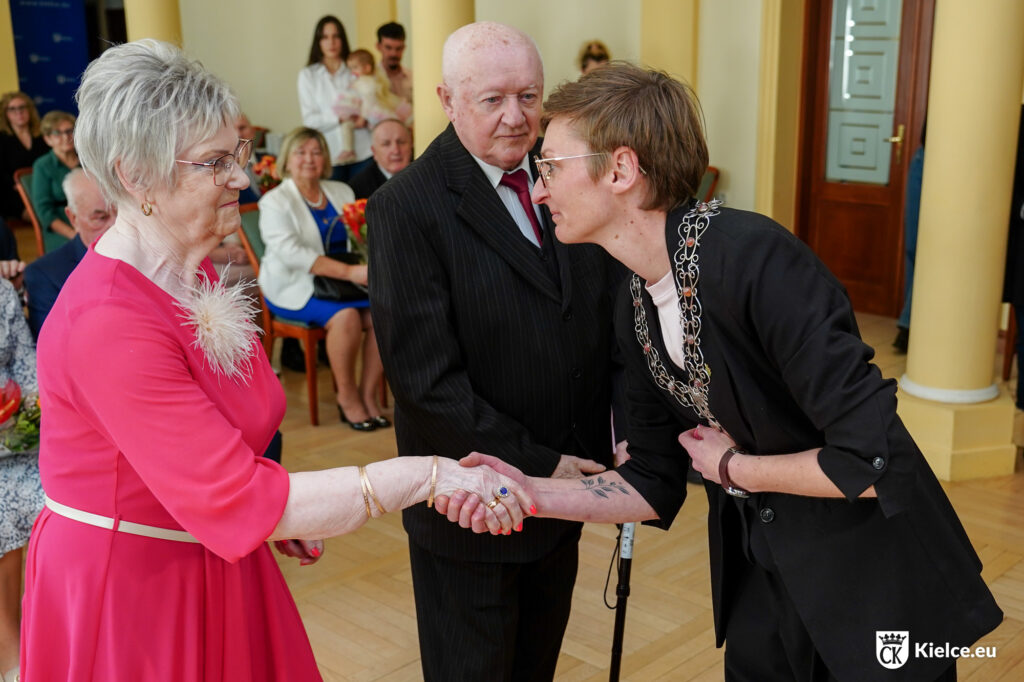 Dziś podczas uroczystego spotkania w ratuszu kilkanaście par odebrało Medale za Długoletnie Pożycie Małżeńskie. To wyjątkowe odznaczenie – aby je otrzymać, potrzebne jest szczęście oraz wytrwałość i zaangażowanie dwóch stron. Wyróżnienia i gratulacje jubilatom przekazała prezydentka Kielc Agata Wojda i Anna Mazur-Kałuża wiceprzewodnicząca Rady Miasta Kielce.