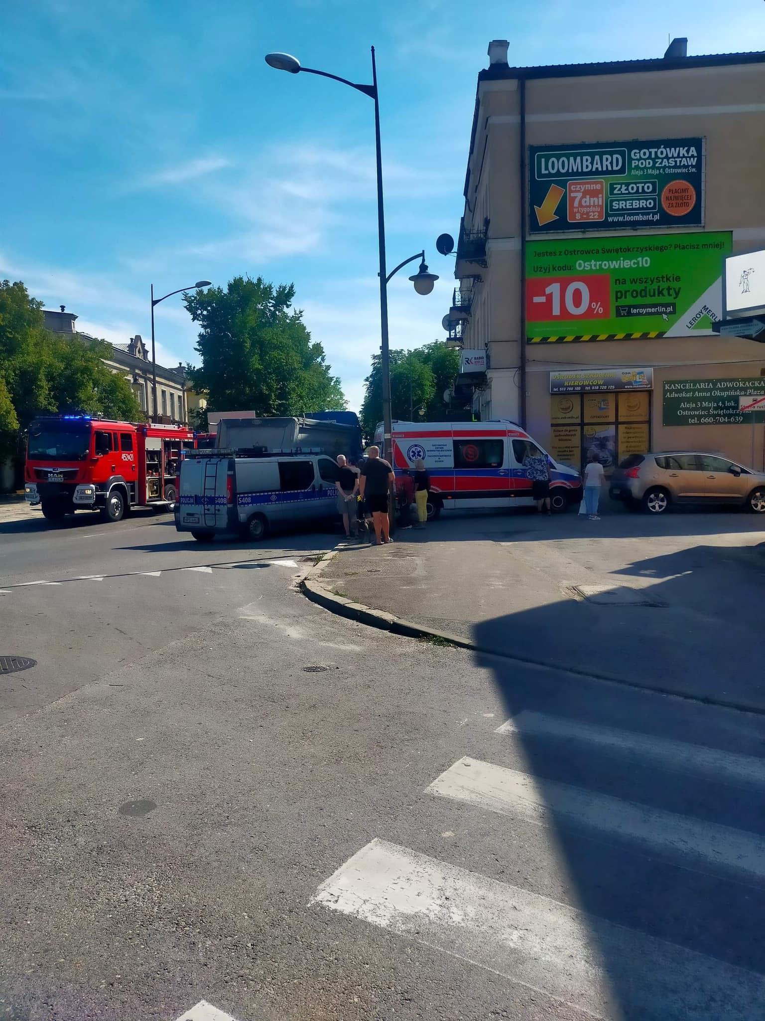 Na miejscu pracują służby ratownicze. Przyczyna zdarzenia nie jest znana. Do śmiertelnego wypadku z udziałem ciężarówki doszło na Alei 3 Maja w Ostrowcu, na drodze wojewódzkiej 754.
